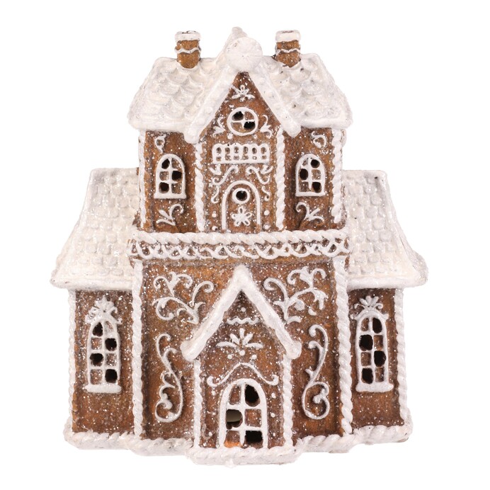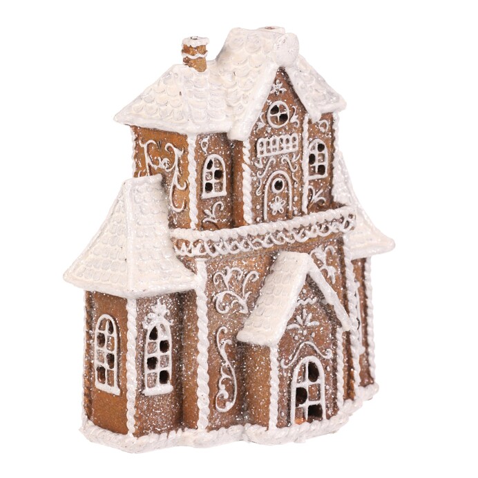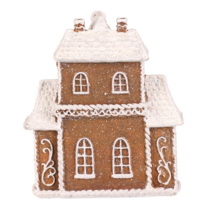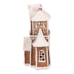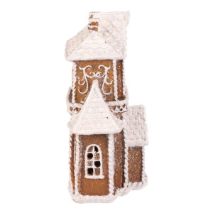 Dotaz na produktPolyresinová stolní dekorace, v podobě zdobeného patrového domku v perníkovém designu, bude nádhernou dekorací pro kouzelné vánoční období. Vypadá jako by byl skutečně vytvořen z perníku a ozdoben sladkou bílou polevou. To ale ještě není vše! Díky zabudovanému LED osvětlení uvnitř, si můžete po jeho rozsvícení vychutnávat pohled na nádherně rozptýlené paprsky, které vycházejí skrze všechna okénka ven.