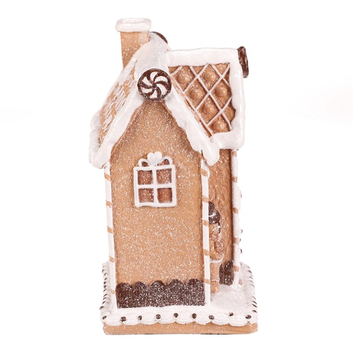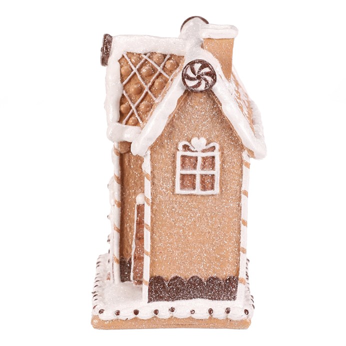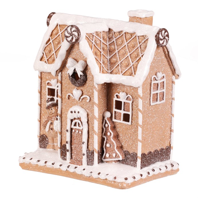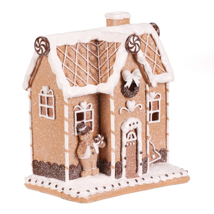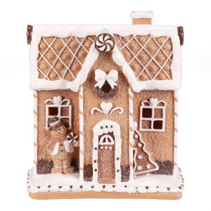 Dotaz na produkt Na splátky ještě dnesPerníkový domek s panáčkem z polyresinu, vybavený LED osvětlením, je vánoční dekorace, která přinese do vašeho domova kouzlo zimní pohádky. Hnědo-bílá kombinace a jemné detaily po rozsvícení vytvoří teplý a magický světelný efekt, který oživí vaše sváteční aranžmá.