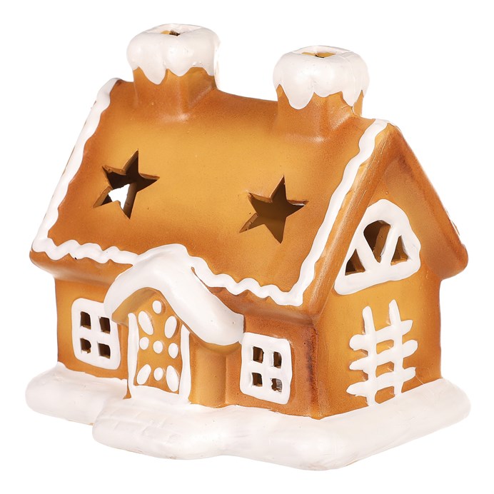 Dotaz na produktVytvořte si kouzelný vánoční prostor s tímto perníkovým domečkem. Hnědý odstín ozdobený bílou polevou vytváří dojem lahodného perníku, přičemž vše je zpracováno z keramiky. Tento úžasný domeček má speciální prostor uvnitř pro umístění čajové nebo LED svíčky, která vytváří příjemné světlo a dodává vánoční atmosféru. Tato keramická ozdoba je nejen dekorativní, ale i funkční, přidávající do vašeho domova neodolatelný světelný prvek.