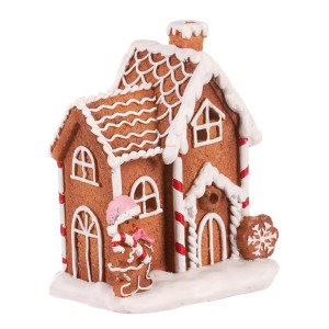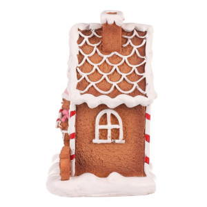 Dotaz na produktDekorace z perníku patří k nejtypičtějším a nejkrásnějším ozdobám využívaným pro vánoční čas. Tento nádherně zdobený perníkový domeček z polyresinu, doplněný LED osvětlením uvnitř, bude skvělou volbou pro ozdobení poliček, stolů a dalších viditelných míst. Vypadá jako cukrářské mistrovské dílo, které umožňuje vytvořit neodolatelný světelný efekt díky pronikajícím paprskům světla skrze okénka, dvířka a komínek.