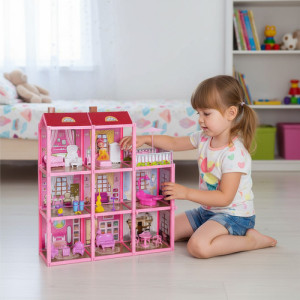 Dotaz na produktDomeček pro panenky Iso Trade je barevná a prostorná vila, která okamžitě probudí fantazii a povzbudí k nekonečnému kreativnímu hraní. Tři úrovně, osm pokojů a terasa vdechnou každému příběhu život a vaše dítě si může interiér vyzdobit přesně podle svých představ. Toto je perfektní sada pro děti, které milují hraní rolí a vytváření si vlastního pohádkového světa.