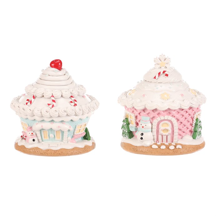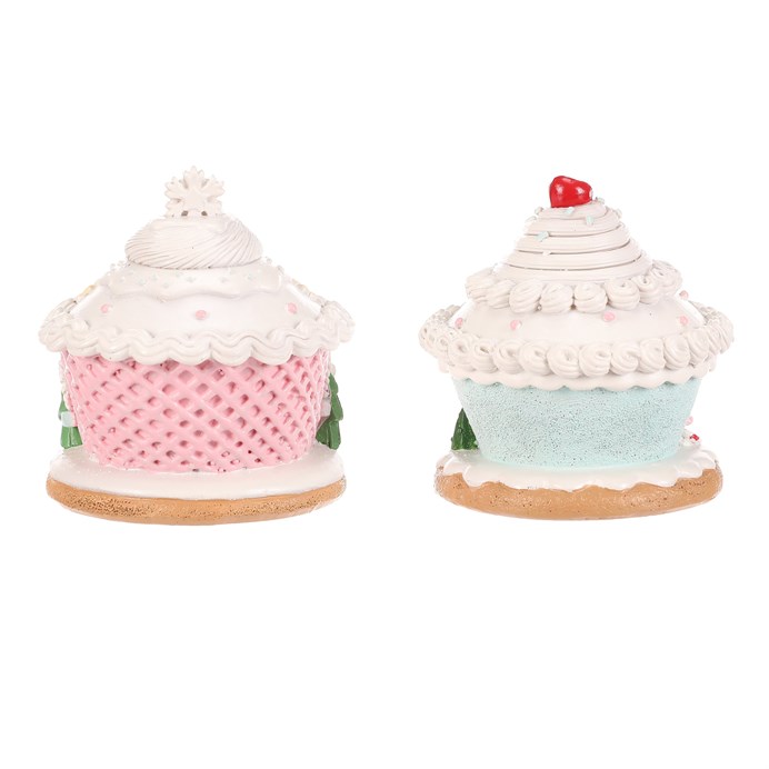 Dotaz na produktPerníkový dortík z polyresinu, se sladce vypadající barevnou polevou, bude skvělou vánoční ozdobou. Je k dostání ve dvou barevných variantách, a to v modrém nebo růžovém provedení. Dortíky jsou navíc vybaveny LED osvětlením, díky kterému můžete vytvořit v interiéru kouzelný světelný efekt. Cena je uvedena za 1 kus dortíku.