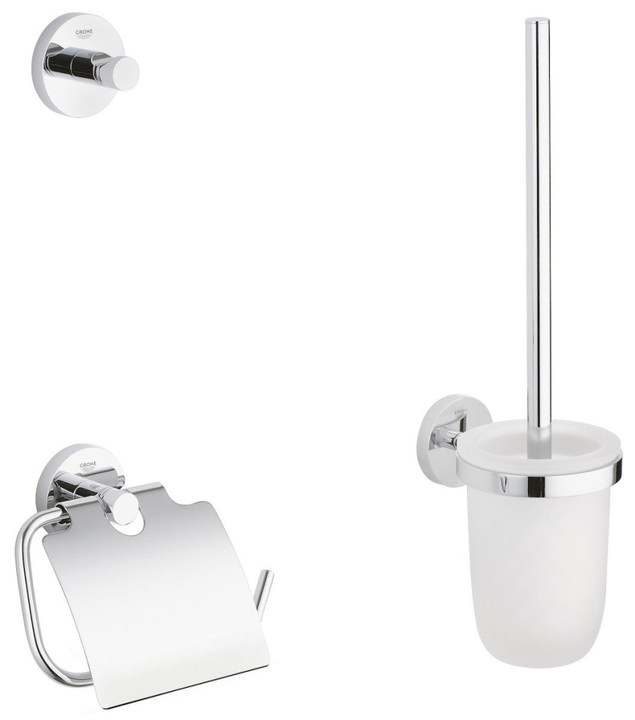 Sada doplňků GROHE Essentials pro městské koupelny. Sada obsahující tři produkty. Německá výroba, vysoce kvalitní kov s chromovou povrchovou úpravou a podomítkové upevnění.