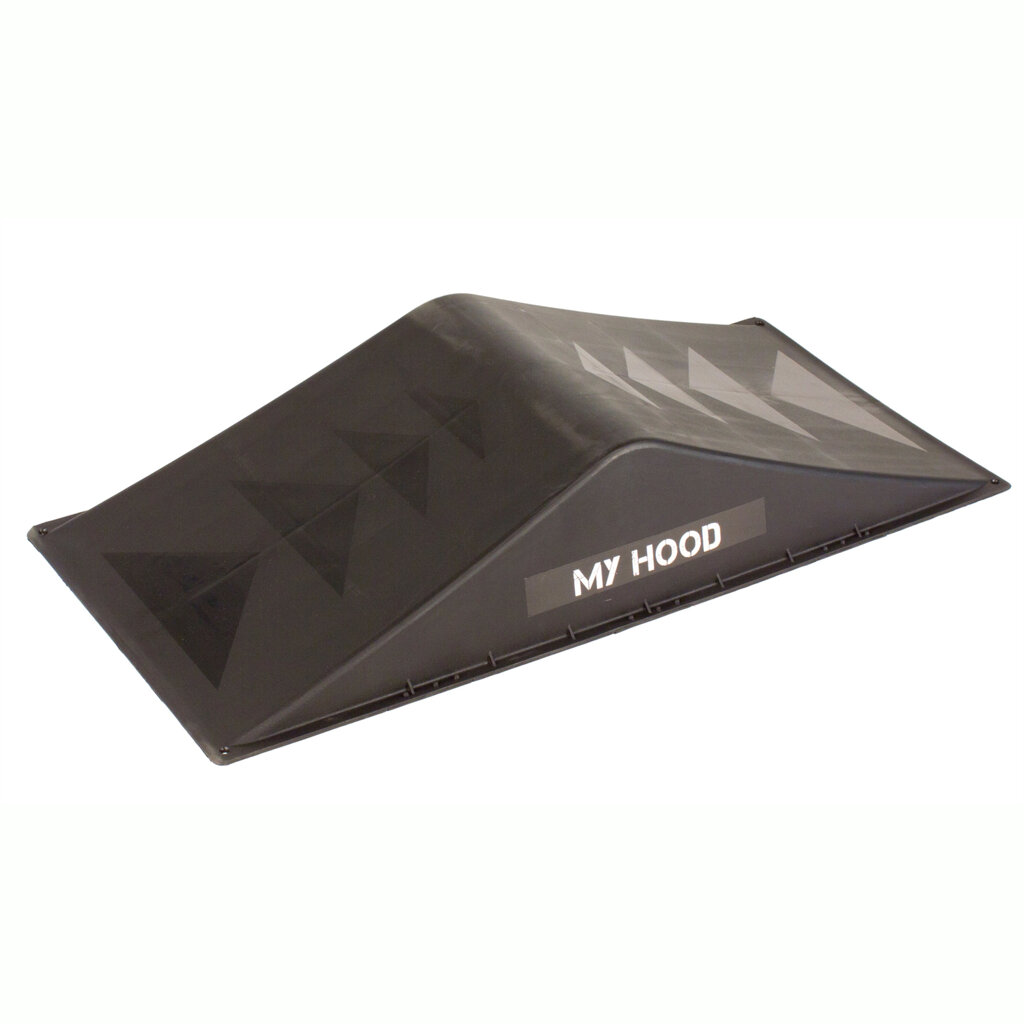 S malou obousměrnou rampou My Hood Double s výškou 15 cm můžete své triky trénovat kdekoli. Lze ji velmi rychle přemístit a vzít s sebou na chatu, do kempu nebo k přátelům. Navzdory své velikosti nabízí spoustu zábavy a výzev, ať už jedete na koloběžce, skateboardu, BMX či kolečkových bruslích. Rampy My Hood mají protiskluzovou spodní stranu, takže stojí stabilně, aniž by byly ukotveny k zemi.