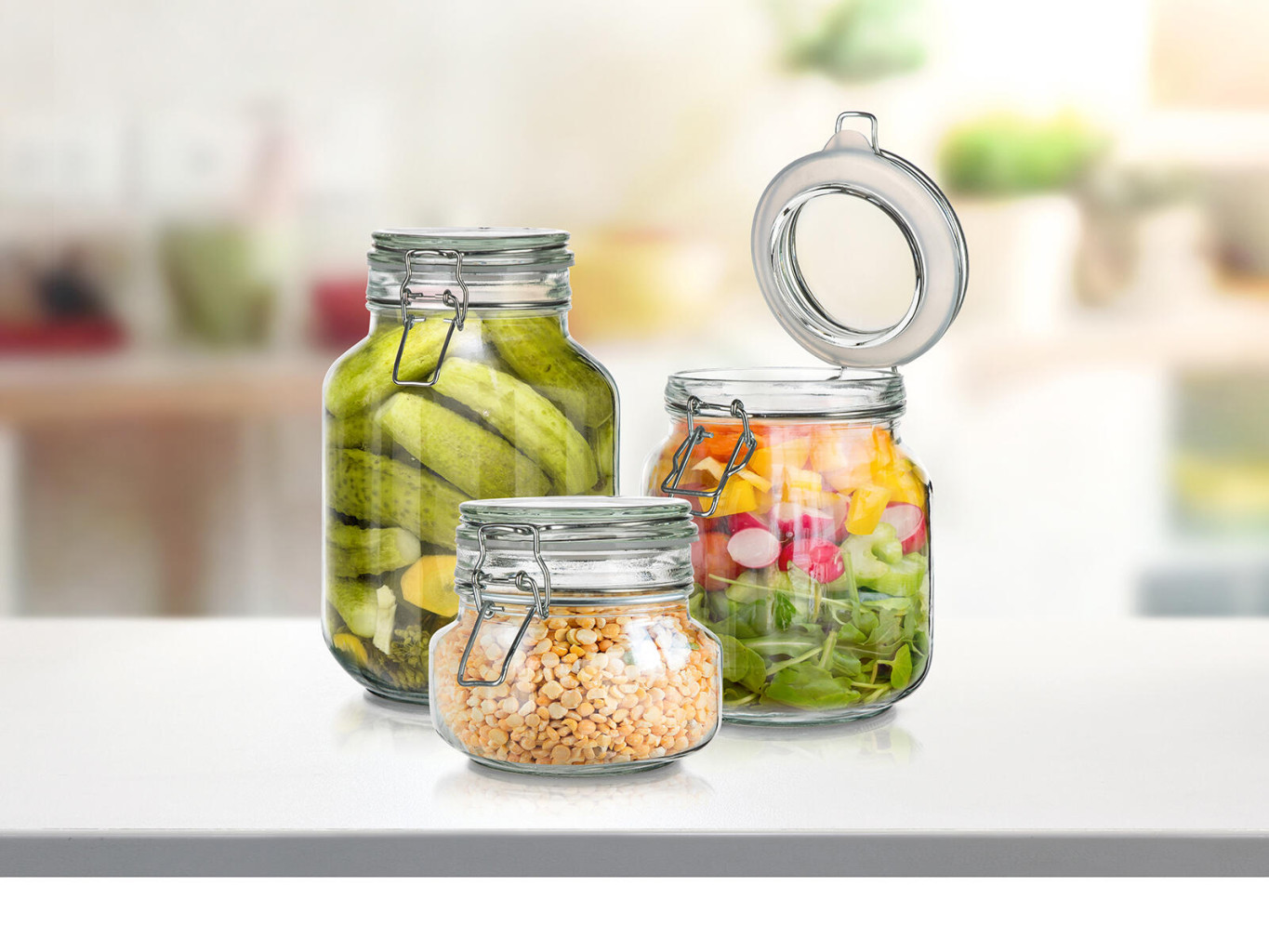 Ideální na uskladnění suchých potravin - těstoviny, houby atd. nebo nakládání.