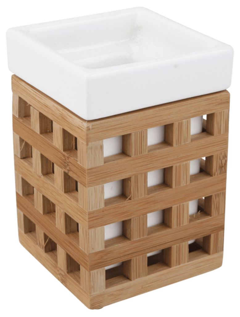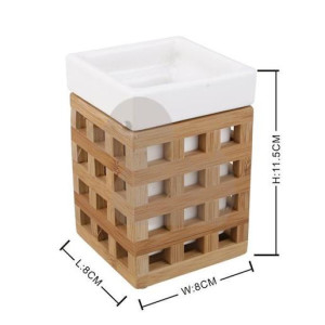Volně stojící dóza LIBRA v hranatém designu. Materiál keramika a dřevo, rozměr základny 8 x 8 cm.