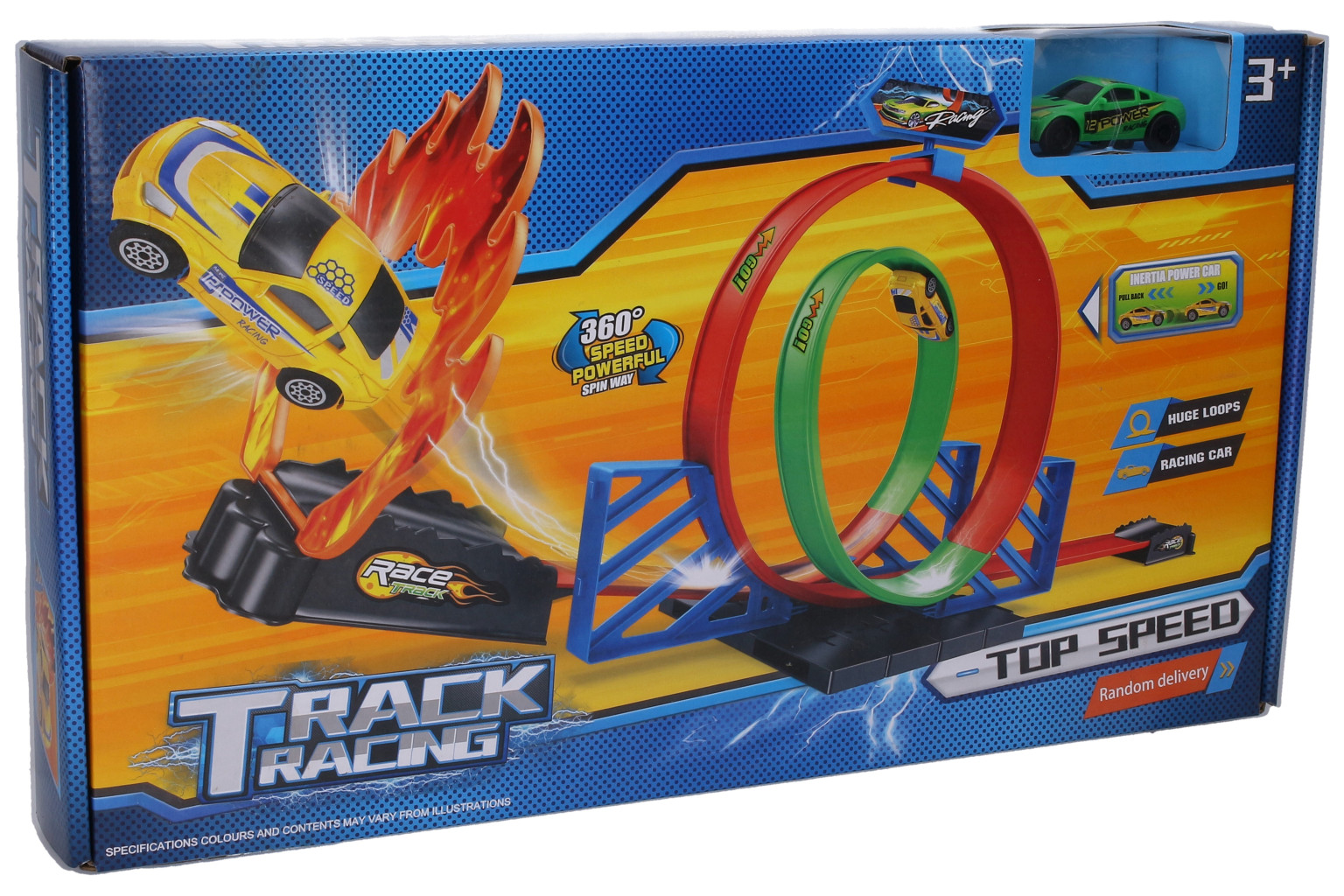 Dotaz na produktDráha se smyčkou a ohnivou rampou. Rozměry sestavené dráhy 100x22x27 cm. Obsahuje 1 auto na zpětné natažení. Schéma na sestavení se nachází na zadní straně obalu.