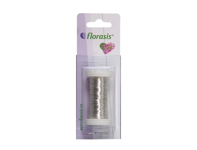 Dotaz na produktLakovaný dekorační drát na cívce stříbrný, hladký. Šířka: 0,3 mm, hmotnost: 50 g.
