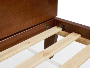 Borovicová postel do ložnice Skandica AGAVA je vyrobena z masivního borovicového dřeva spojeného tzv. "mikro-drážkami". Toto řešení zajišťuje absenci suků a vad na vnější straně nábytku. Jednotlivé prvky nábytku jsou navzájem spojeny silnými kovovými šrouby. Nábytek lze mnohokrát rozebrat a sešroubovat. Boční prkna a většina konstrukčních prvků mají tloušťku až 4 cm! To zaručuje bezproblémové používání po mnoho let. Stejně jako všechny postele Skandica ani pevně přišroubovaná postel AGAVA nebude za žádných okolností vrzat ani vydávat zvuky. Postarali jsme se o to tím, že jsme navrhli speciální spojovací prvky, které spojují jednotlivé prvky nábytku mezi sebou.