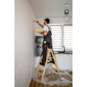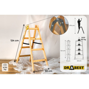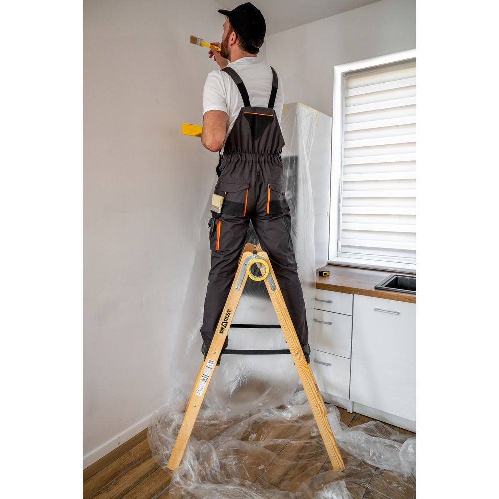 Dřevěné malířské štafle 2x4 stupně oboustranné DRABEST DREW 2x4 PRO jsou ideální volbou pro profesionální i domácí použití. Jsou vyrobeny z vysoce kvalitního impregnovaného dřeva bez suků, které je odolné vůči vlhkosti, což zajišťuje dlouhou životnost i při pravidelném používání. Díky oboustrannému provedení můžete bezpečně pracovat z obou stran, což zvyšuje flexibilitu při práci.