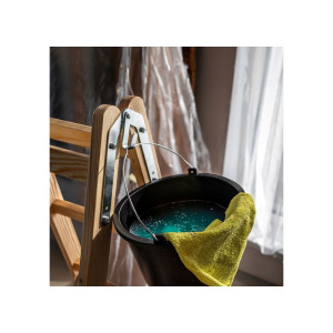 Stabilitu a bezpečnost zajišťuje masivní dřevěná konstrukce, pohodlné nášlapy a speciálně profilované konce schůdků. Rakouský pant umožňuje plynulé a bezpečné rozkládání bez rizika zaklínění, a tím přispívá k celkové spolehlivosti výrobku. Pro snadnou manipulaci s pomůckami je k dispozici praktický háček na zavěšení kbelíku, nářadí nebo příslušenství.