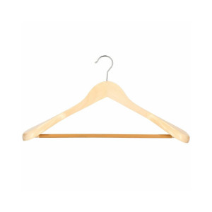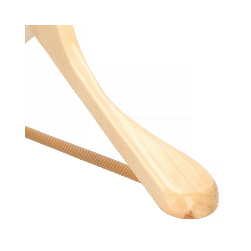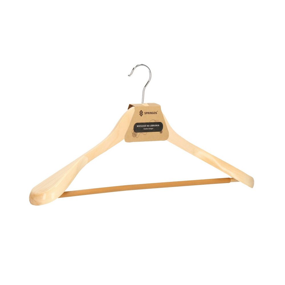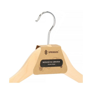 Značka: Springos. Materiál: lakované dřevo. Barva: přírodní dřevo. Šířka: 45 cm. Tloušťka ramínka v nejširším místě je 5,6 cm. Tloušťka v horní části ramínka 12 mm. Výška s háčkem: 23 cm