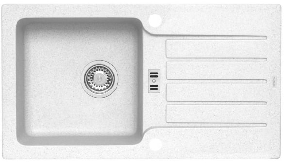 Dotaz na produkt Na splátky ještě dnesGranitový jednodřez s odkapem, excentrický sítkový odtok 3 1/2" s přepadem, sifon pro úsporu místa s odbočkou na myčku, vyvrtaný otvor pro baterii