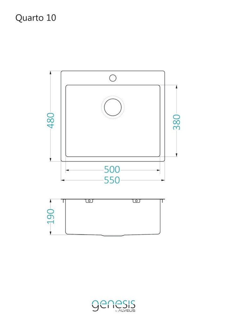 Dotaz na produkt Na splátky ještě dnesNerezový jednodřez, materiál chromniklová ocel (CrNi 18/10) o rozměrech 550 x 480 mm a hloubce vaničky 190 mm. Dřez je určen pro horní montáž do minimálně 600 mm široké skříňky. Součástí dřezu je sítkový ventil a excentrický sifon s odbočkou na myčku, síla plechu 1 mm.