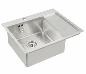 Dotaz na produkt Na splátky ještě dnesNerezový jednodřez s odkapem, materiál chromniklová ocel (CrNi 18/10) o rozměrech 615 x 480 mm a hloubce vaničky 190mm. Dřez je určen pro horní montáž do minimálně 450 mm široké skříňky. Součástí dřezu je sítkový ventil a excentrický sifon s odbočkou na myčku, síla plechu 1mm, provedení vanička vlevo.