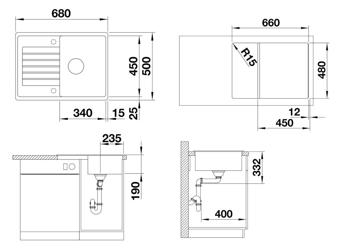 • Rozměr dřezové nádoby: 340 x 450 x 190 mm