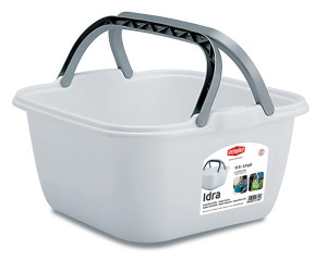 Čtvercový plastový dřez IDRA na 13 l s uchy lze ideálně využít v široké domácnosti, k dispozici je ve třech barevných variantách.