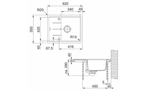 Spodní skříňka od 450 mmRozměry: 620 × 500 mmVýřez: 600 × 480 mm (Rádius 20 mm)Dřez: 340 × 420 × 200 mmCena zahrnuje:Sítkový ventil 3 1/2“ s přepademSifon pro úsporu místa 6/4“ s odbočkou na myčku...