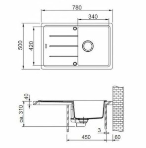 Spodní skříňka od 450 mmRozměry: 780 × 500 mmVýřez: 760 × 480 mm (Rádius 20 mm)Dřez: 340 × 420 × 200 mmCena zahrnuje:Sítkový ventil 3 1/2“ s přepademSifon pro úsporu místa 6/4“ s odbočkou na myčku...