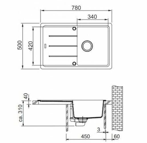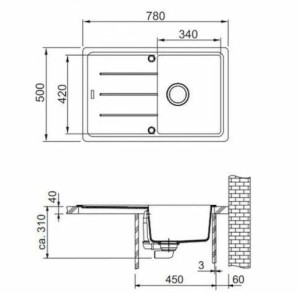 Spodní skříňka od 450 mmRozměry: 780 × 500 mmVýřez: 760 × 480 mm (Rádius 20 mm)Dřez: 340 × 420 × 200 mmCena zahrnuje:Sítkový ventil 3 1/2“ s přepademSifon pro úsporu místa 6/4“ s odbočkou na myčku...
