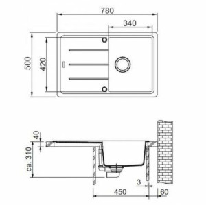 Spodní skříňka od 450 mmRozměry: 780 × 500 mmVýřez: 760 × 480 mm (Rádius 20 mm)Dřez: 340 × 420 × 200 mmCena zahrnuje:Sítkový ventil 3 1/2“ s přepademSifon pro úsporu místa 6/4“ s odbočkou na myčku...