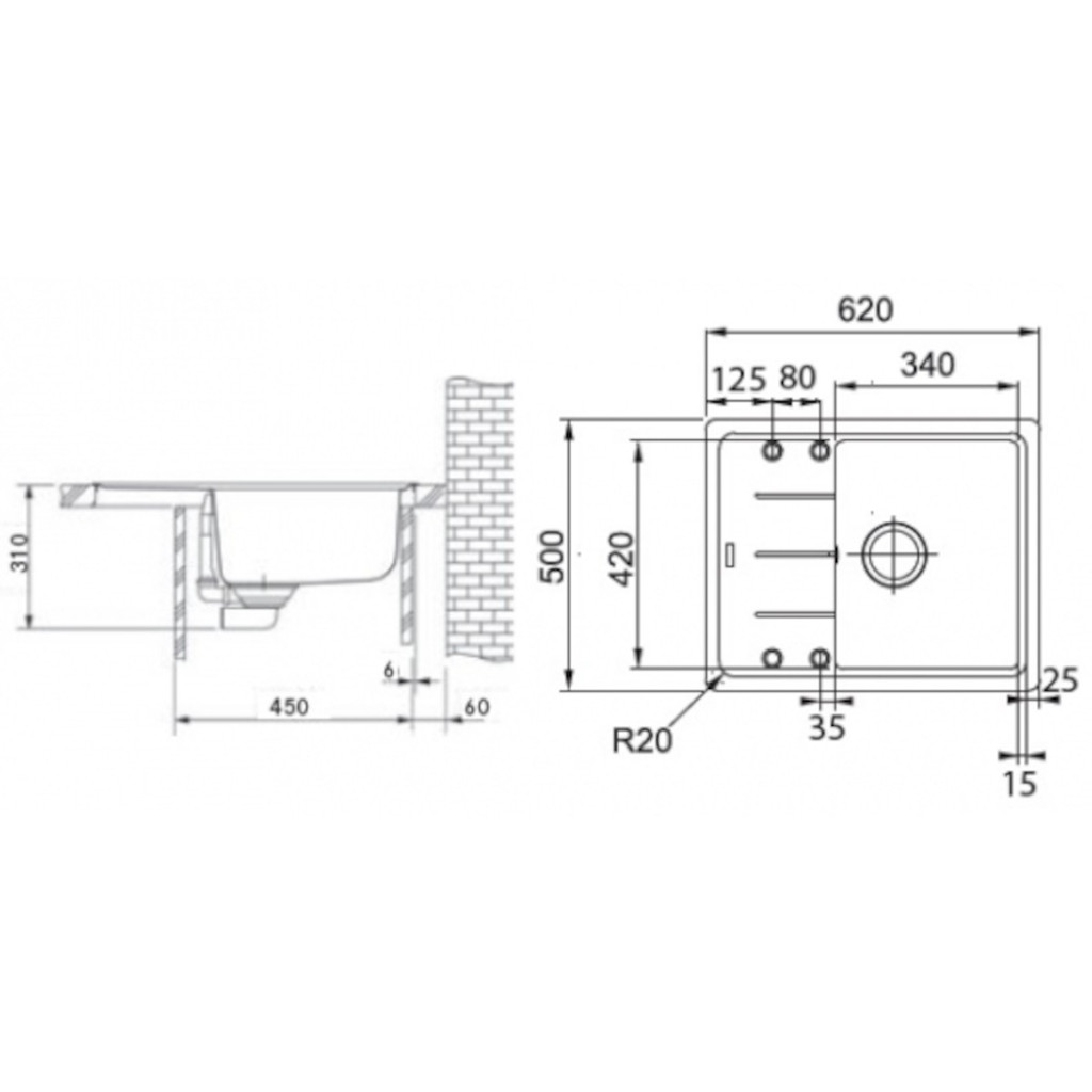 - Dřez: 350 × 430 × 180 mm