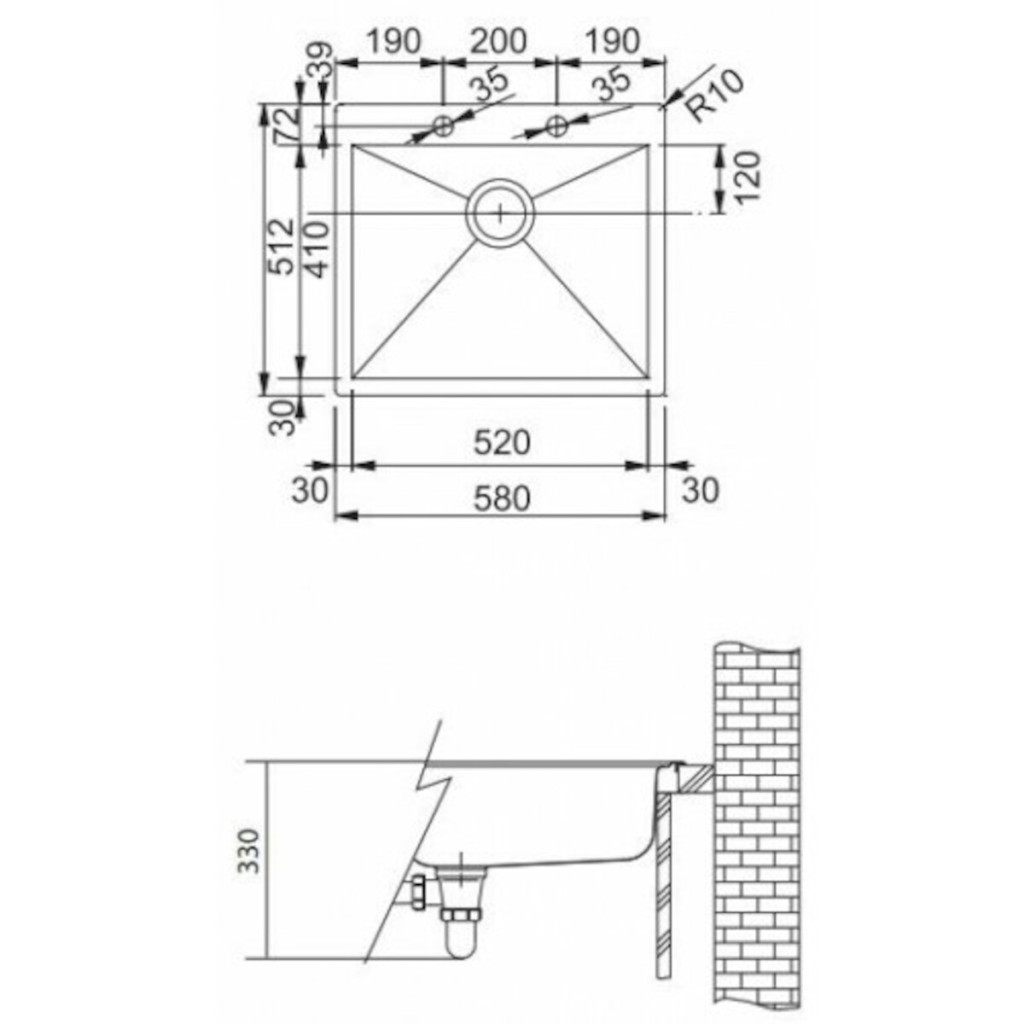 Spodní skříňka od 600 mmRozměry: 580 × 512 mmVýřez: Dle šablonyDřez: 520 × 410 × 200 mmCena zahrnuje:Otočný sítkový ventil 3 1/2“ s přepademSifon pro úsporu místa 6/4“ s odbočkou na myčku nádobíOtvor...