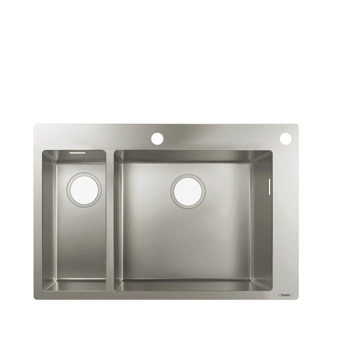 S hlavním dřezem a dalším dřezem umístěným vlevo celý dřez zajišťuje dvojnásobné pohodlí a vysokou flexibilitu v každodenních kuchyňských rutináchRučně svařované: Vysoce kvalitní zpracovaná nerezová ocel pro hygienickou pracovní plochu a dlouhodobou kvalituVýztuha baterie s úhlem vyztužení a dvojnásobnou tloušťkou materiálu zajišťuje trvale stabilní držení kuchyňské baterieFlexibilní: Dřez může být integrován v jedné rovině s pracovní plochou nebo namontován naplochoSnadná údržba a robustnost: Povrch z nerezové oceli je necitlivý, odolný a snadno se čistíPoznámka: U dvojitých umyvadel je nutná automatická odtoková a přepadová souprava D15-11 od společnosti hansgrohe (položka č. 43932800)Na míru pro moderní kuchyň: vhodné pro spodní skříňky o šířce nejméně 80 cmDvojité umyvadlo s hlavním a přídavným umyvadlem (vlevo) v obdélníkovém tvaru (755×500 mm). Hlavní umyvadlo (450 × 400 mm) s hloubkou 190 mm, další umyvadlo (180 × 400 mm) s hloubkou 135 mmSnadná instalace: praktický otvor pro baterii (35 mm) pro snadnou instalaci a otvor pro odtokové dálkové ovládání jsou již předvrtányOriginalita: Dřez lze na skříňku namontovat shora nebo v jedné roviněMinimalistický design a nadčasová estetika se zaměřují na funkčnost a harmonizaci s každou kuchyňskou bateriíVysoce kvalitní výroba: ručně svařovaná nerezová ocel se snadno čistí, je hygienická a odolná vůči namáhání při každodenním používání v kuchyniPevné usazení kuchyňské armatury: speciální výztuž pod otvorem pro baterii pomocí extra vyztužovacích konzolVyžaduje se automatická odtoková a přepadová souprava D15-11 (č. 43932800) od společnosti hansgrohe a je k dispozici samostatněPřepad je integrován na pravé straně hlavního umyvadla a elegantně zapadá do lineárního designuSoučásti dodávky: Vestavný dřez, upevňovací svorky pro rozsah upnutí 28–40 mm, montážní návodVšechny součásti jsou vyrobeny z vysoce kvalitních materiálů – pro větší bezpečnost a dlouhodobé užívání v domácnosti.Historie hansgrohe od roku 1901 – prémiová značka výrobků pro koupelnu a kuchyňProdloužená pětiletá záruka* na produkt, vyrobený podle nejvyšších kvalitativních standardů *(viz www.hansgrohe.cz/zaruka)PARAMETRY: