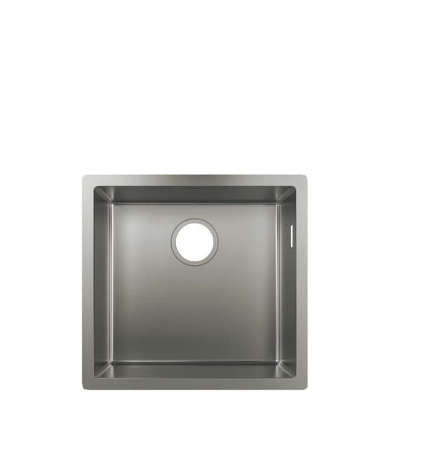 Podpultový kuchyňský dřez hansgrohe 400 vyrobený z nerezové oceli pro 50 cm spodní skříňkuje perfektně nastaven pro pohodlnou práci v kuchyni a podporuje lineární funkčnost každodenních úkolů.