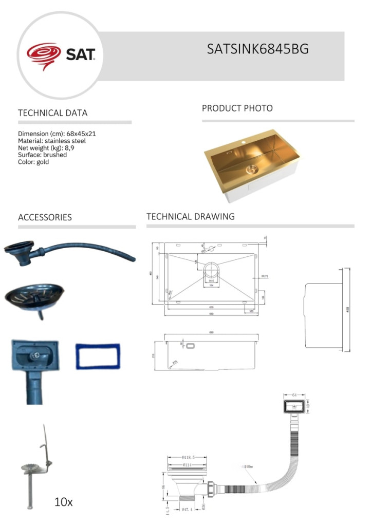 Věříme, že SAT Aurum kuchyňský dřez se stane nezbytným prvkem vaší kuchyně. Elegantní design a robustní konstrukce jej řadí mezi top produkty na trhu. Začněte si užívat jednoduchosti a elegance v kuchyni s tímto kvalitním dřezem.