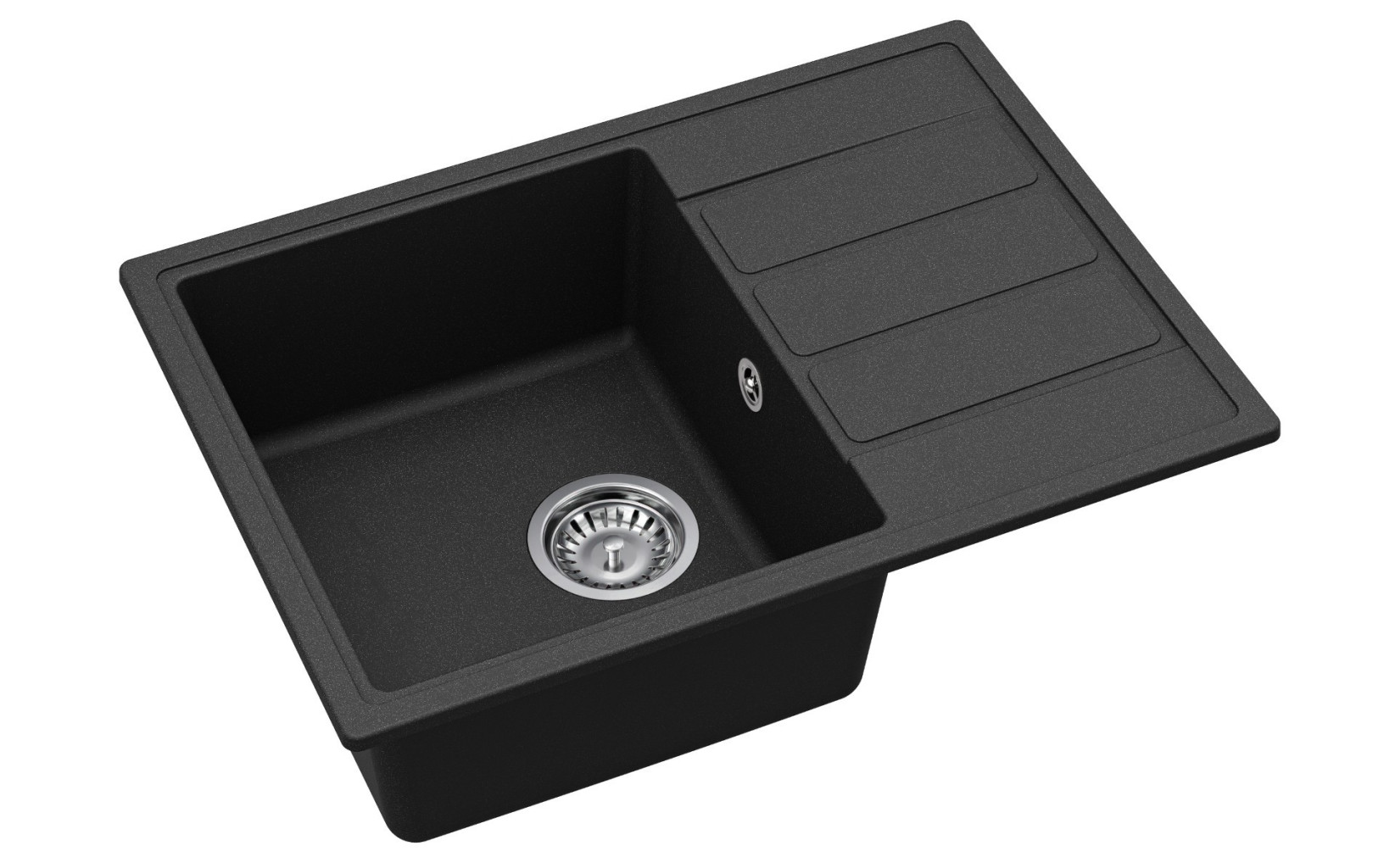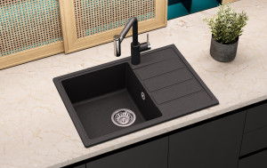 PARAMETRY:Balení: 1 ksDruh výrobku: dřez Materiál: Granit Barva popisná: černá Barva základní: černá Šířka: 62  cmHloubka: 17  cmDélka: 44  cmTvar dřezu: jednodřez S odkapávačem: ano Značka:...