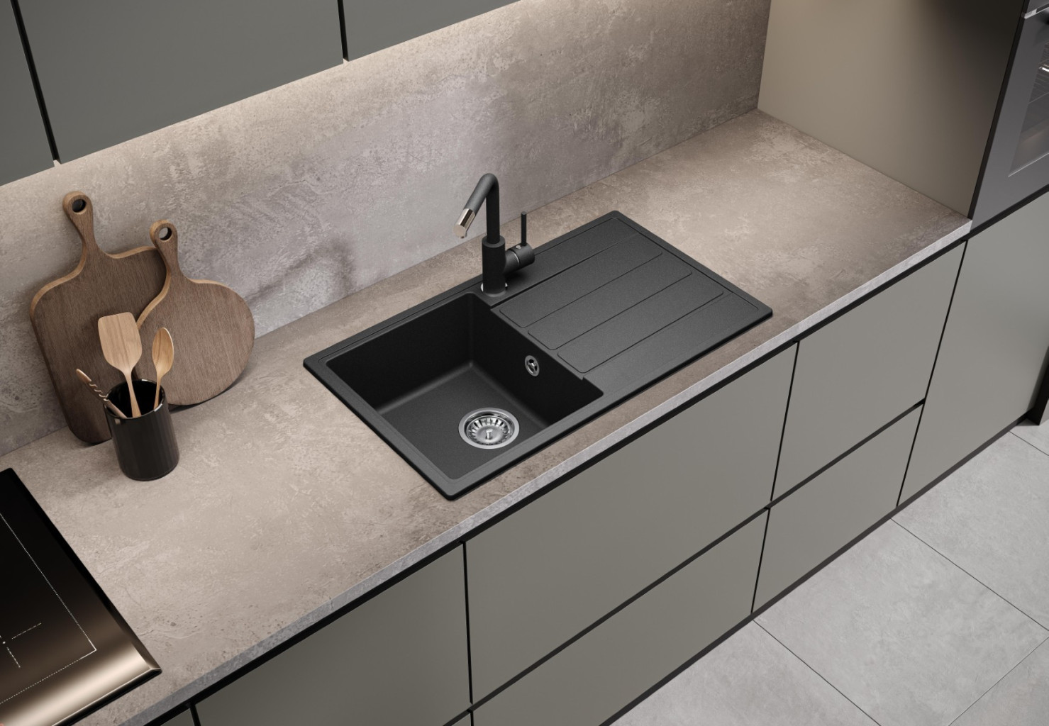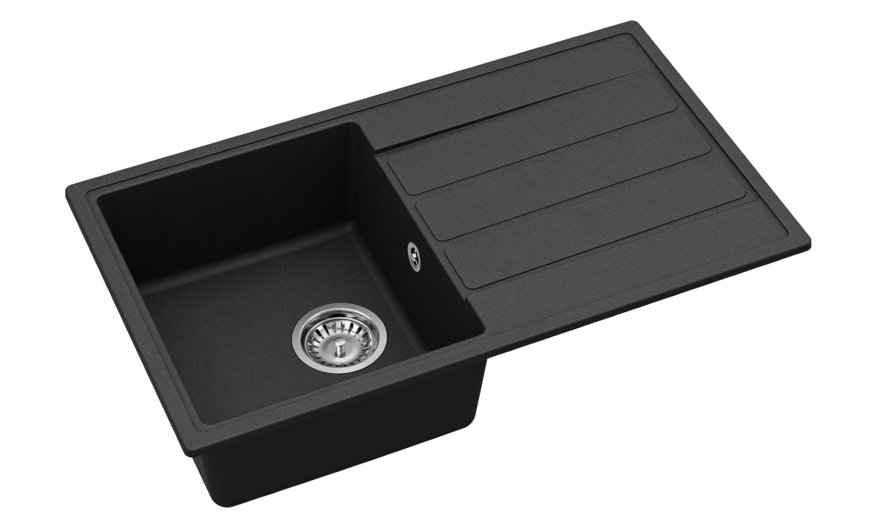 PARAMETRY:Balení: 1 ksDruh výrobku: dřez Materiál: Granit Barva popisná: černá Barva základní: černá Šířka: 76  cmHloubka: 17  cmDélka: 44  cmTvar dřezu: jednodřez S odkapávačem: ano Značka:...