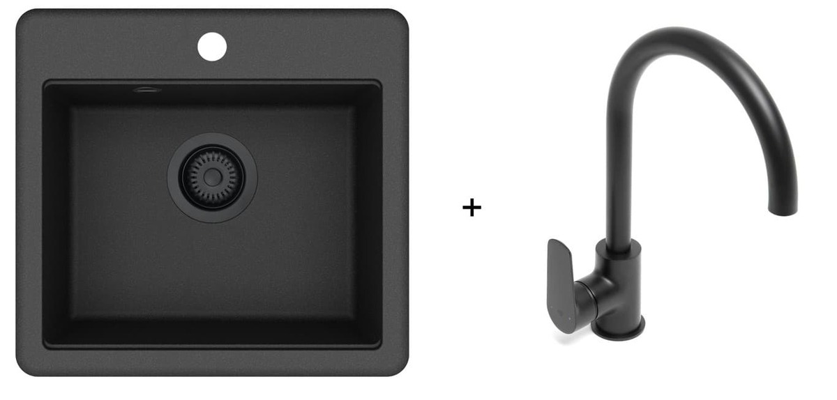 PARAMETRY:Balení: 1 ksDruh výrobku: set dřezu a baterie Materiál: Granit Barva popisná: černá Barva základní: černá Šířka: 47  cmHloubka: 19  cmDélka: 44  cmTvar dřezu: jednodřez S odkapávačem:...