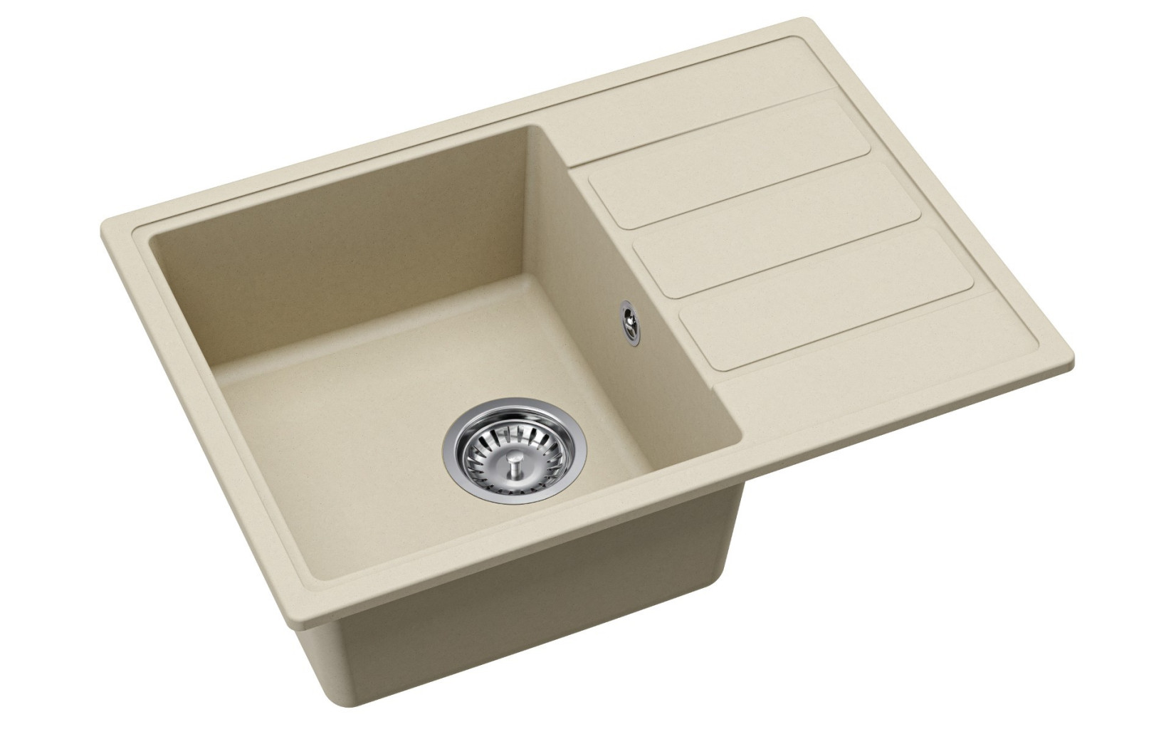 PARAMETRY:Balení: 1 ksDruh výrobku: dřez Materiál: Granit Barva popisná: jasmín Barva základní: ostatní Šířka: 62  cmHloubka: 17  cmDélka: 44  cmTvar dřezu: jednodřez S odkapávačem: ano Značka:...