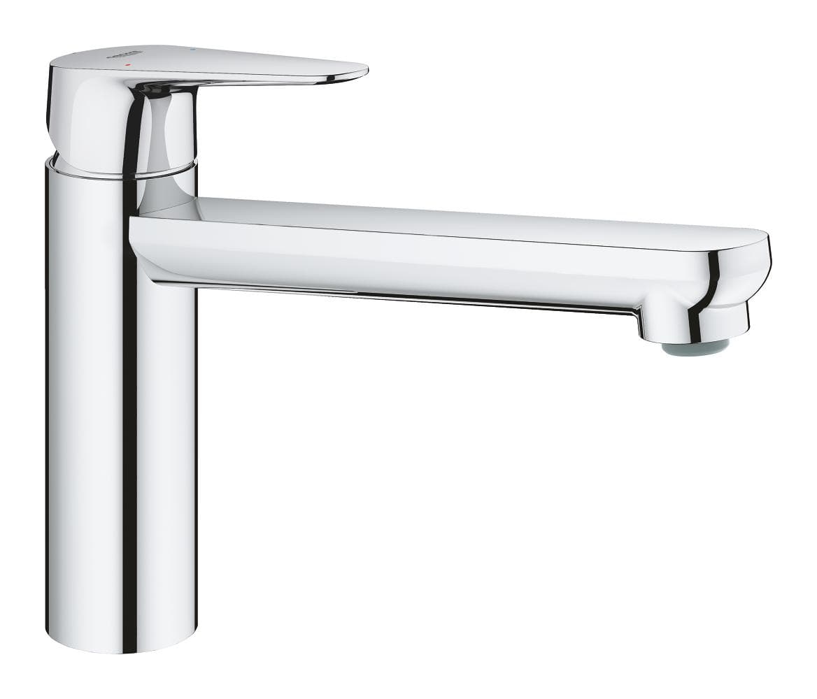 Páková kuchyňská baterie GROHE BauCurve se středně vysokou výpustí. Německá výroba, 140˚° otočná výpusť a chromový povrch. 31715000