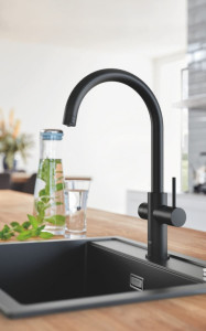 Dotaz na produkt Na splátky ještě dnesVítejte ve vaší nové, chytré domácnosti, ve které budete mít k dispozici filtrovanou, neperlivou nebo perlivou vodu kdykoliv budete chtít. Úvodní sada systému GROHE Blue Home Duo obsahuje vše, co potřebujete k tomu, abyste si mohli vychutnat filtrovanou, chlazenou vodu přímo z kuchyňské baterie, a navíc řadu inteligentních funkcí. Můžete si navíc nastavit, zda chcete vodu neperlivou, jemně perlivou či perlivou. Tato propojená verze podporuje připojení k aplikaci GROHE Ondus**, jejíž prostřednictvím můžete baterii ovládat pomocí mobilního telefonu***. Pomocí aplikace lze také sledovat spotřebu vody nebo nastavit automatickou objednávku náhradních CO2 karbonizačních lahví. Pomocí telefonu lze také provést nastavení systému a statistiky o konzumaci vody lze sdílet do fitness aplikací. Součástí sady je páková baterie GROHE Blue, nízkoenergetický chladič, jehož součástí již je filtr a CO2 karbonizační lahev pro případné nasycení vody. Chladič se vejde do jakékoliv kuchyňské linky, která je alespoň 30 cm široká, takže je systém vhodný i do menších kuchyní. Filtr i 425g CO2 karbonizační lahev je možné snadno vyjmout a vyměnit. S dřezovou baterií Blue Home Duo samozřejmě získáte veškeré benefity kvalitní kuchyňské baterie GROHE. Komfortní, vysoká výpusť ve tvaru písmene C se 150° rozsahem otáčení a štíhlé tělo ukrývají oddělené vnitřní rozvody pro filtrovanou a nefiltrovanou vodu. Rukojeť baterie slouží ke spouštění běžné kohoutkové vody, kterou se můžete opláchnout nebo umýt nádobí. Pro dávkování filtrované vody s volitelným stupněm nasycení však stačí stisknout podsvícené LED tlačítko. LED indikátor vás rovněž upozorní na potřebu vyměnit kazetu filtru. Tato monobloková kuchyňská baterie, vytvarovaná v charakteristických plynulých liniích GROHE, je opatřena odolným, snadno udržovatelným povrchem GROHE Starlight a odolným vnitřním mechanismem GROHE SilkMove pro hladký chod. Součástí sady je navíc naprosto vše, co budete potřebovat k instalaci, která nezabere déle než 30 minut. GROHE Blue Home – nový, chytrý způsob, jakým si vychutnat svěží, filtrovanou vodu přímo z kohoutku.