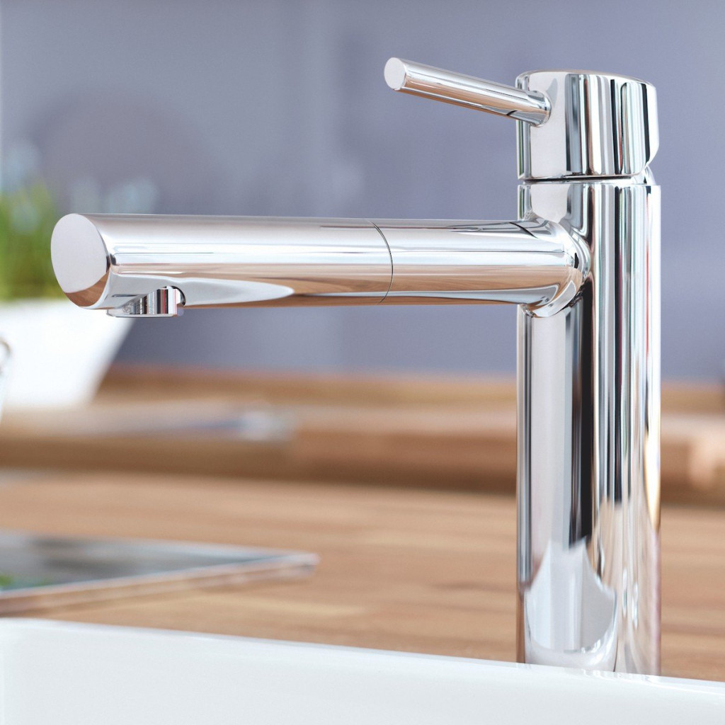 Kuchyňská baterie GROHE Concetto, středně vysoká výpusť s vytahovací sprchovou hlavicí, 100° rozsah otáčení, GROHE StarLight