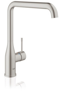 Páková kuchyňská baterie GROHE Essence s vysokou výpustí ve tvaru písmene L. Dřezová baterie s německou kvalitou a nastavitelným rozsahem otáčení. Barva: SuperSteel.