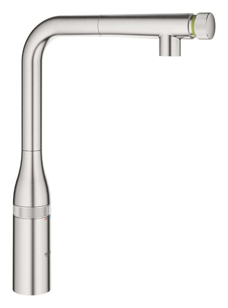 Kuchyňská baterie GROHE Essence SmartControl. Vysoká baterie ve tvaru písmene L s vytahovací sprchou, 360° rozsah otáčení, povrch z nerezové oceli. Úspora vody. 31615DC0
