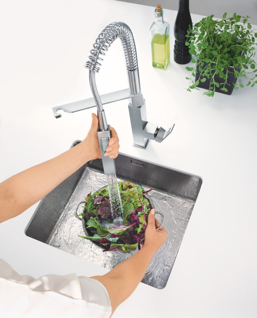 ÚvodKuchyněRekonstrukce kuchyněKuchyňské baterieDřezová baterie GROHE Eurocube s otočným raménkem supersteel 31395DC0