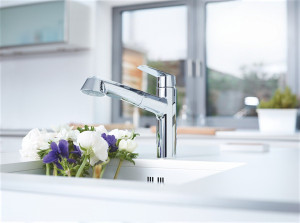 Kuchyňská baterie GROHE Eurodisc Cosmopolitan, 100° rozsah otáčení, vytahovací sprchová hlavice