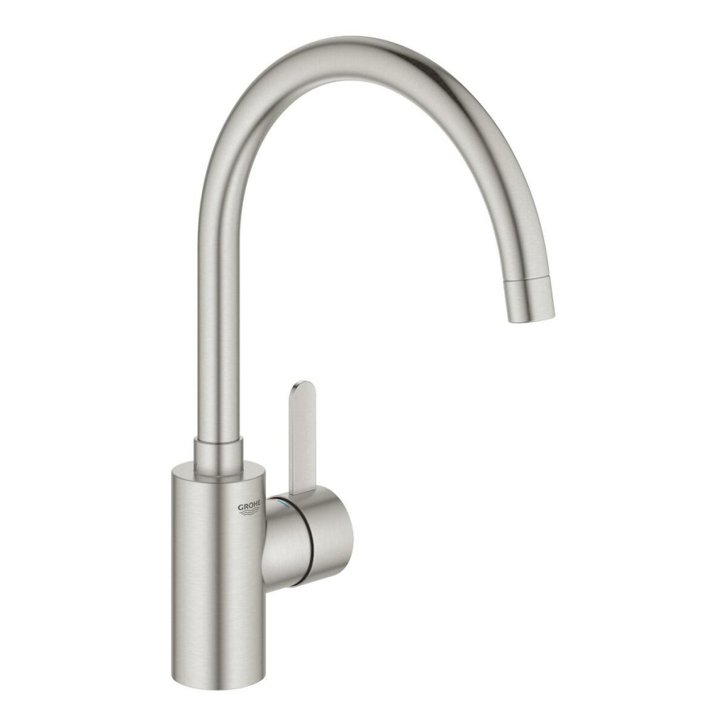 Páková kuchyňská baterie GROHE Eurosmart Cosmopolitan, vysoká výpusť, volitelný rozsah otáčení. Moderní kuchyňská baterie s matnou povrchovou úpravou. Snadná instalace, pohodlné ovládání a německá spolehlivost.