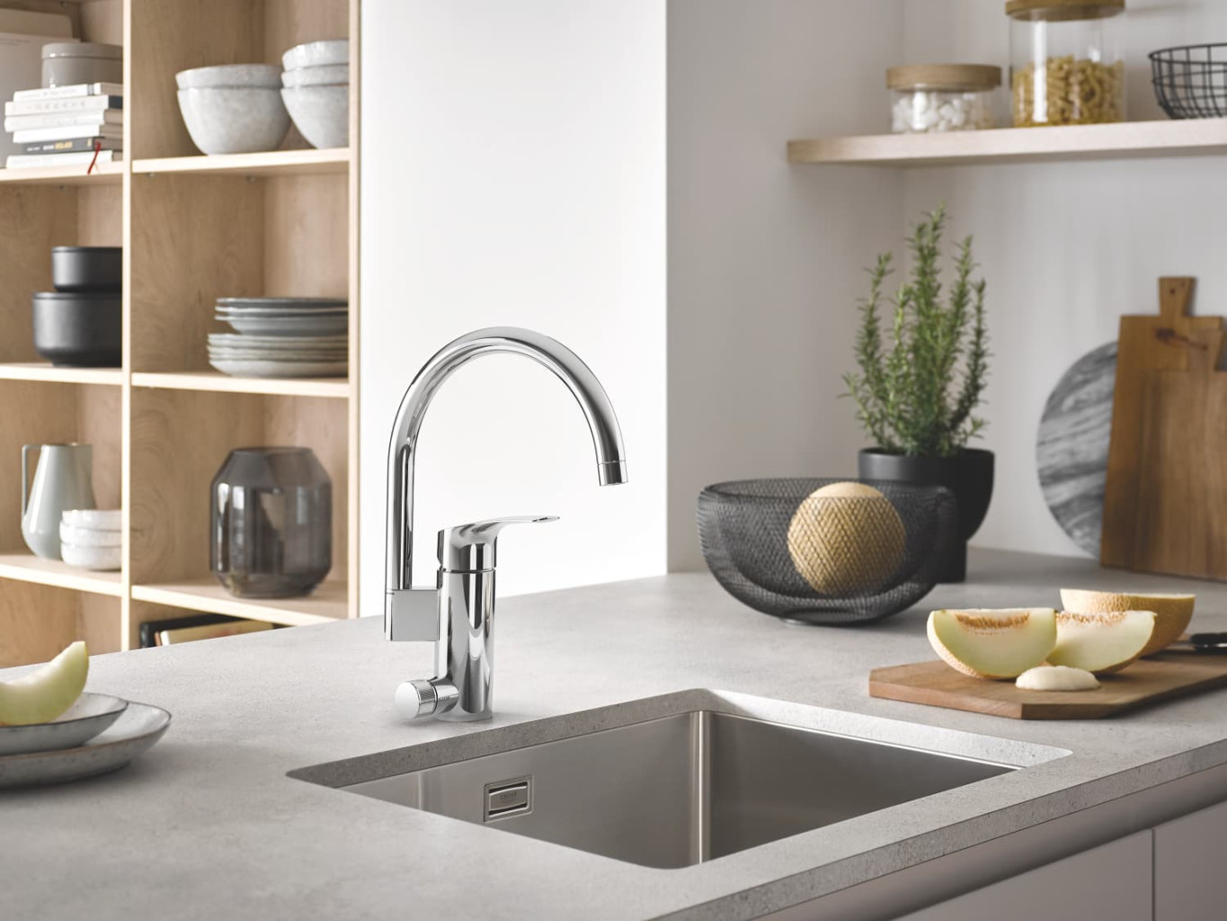 ÚvodKuchyněRekonstrukce kuchyněKuchyňské baterieDřezová baterie GROHE Eurosmart New s otočným ramínkem chrom 33202003