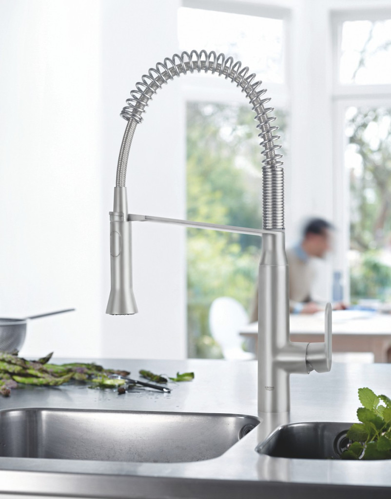 Kuchyňská baterie GROHE K7, středně vysoká výpusť, profesionální sprcha, GROHE SuperSteel