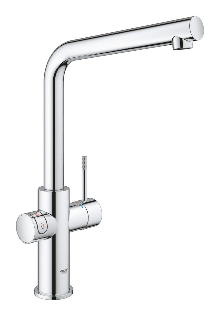 Kuchyňská baterie GROHE RED Duo (výpusť ve tvaru písmene L) s filtrační sadou a bojlerem velikosti L pro okamžitou vařící vodu. Chromový povrch. Energetická efektivita třídy A a bezpečnostní technologie