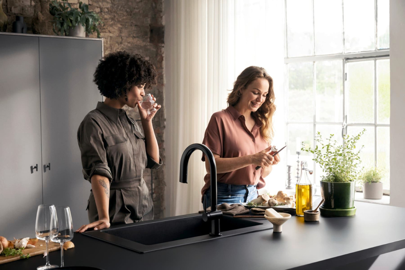 Baterie Aqittura M91 FilterSystem 210 v matné černé s vytahovacím výtokem a sBoxem (startovací sada) je ideálním řešením pro každého, kdo od kuchyňské baterie požaduje filtrovanou vodu, která je buď mineralizovaná, nebo změkčená. Systém od hansgrohe čistí pitnou vodu z vodovodní sítě a zajišťuje tak základní předpoklad celkového zdraví. Z kuchyňské baterie vytéká po stisknutí tlačítka odděleným výtokem čištěná neperlivá voda. Vyměnitelný filtr je k dispozici v šesti různých variantách, takže dokáže poskytnout vodu pro každou chuť!