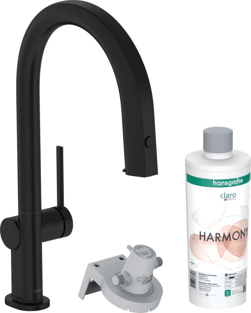Oddělené vedení pro filtrovanou a nefiltrovanou voduPrůměrné obohacení minerálními látkami (pro více než 300 l podle WQA): 60 mg/l hořčíku, 25 mg/l draslíkuFiltrační kapacita: 300 lGarantovaná dostupnost: Náhradní díly jsou dostupné ještě 15 let po ukončení výroby příslušné řadyFiltrovaná a mineralizovaná voda z kuchyňské baterie: více minerálů, méně znečišťujících látek, lepší chuťOddělené vedení filtrované a nefiltrované vodyVoda vyhovující každé chuti: filtrovaná voda bez bublinek a mineralizovaná pitná voda pouhým stisknutím tlačítka na výtoku.Součásti dodávky: páková kuchyňská baterie, připojovací hadice, upevňovací materiál, montážní návodPrůměrné obohacení minerálními látkami (více než 300 l podle WQA): 60 mg/l hořčíku, 25 mg/l draslíkuFiltrační kapacita: 300 lŠest možných filtračních vložek: aktivní uhlí, aktivní uhlí + mineralizace („Harmony“, „Life“, „Sport“), aktivní uhlí + změkčovač vody (dvě velikosti kapacity filtru)Vyšší komfort: s vytahovací sprškou (0,5 m) pro větší akční rádius kolem kuchyňského dřezuVětší volnost pohybu: Otočný výtok nabízí tři varianty rozsahu otočení (60°, 110° nebo 150°).Snadné čištění: Vodní kámen lze odstranit lehkým otřením silikonové vložky na výtoku (QuickClean).Mimořádně dlouhá životnost: Dodává se s kvalitním, snadno použitelným keramickým systémem baterie od hansgrohe.Výrazné kontrasty: Trendová matná černá barva zvýrazňuje štíhlý základní tvar a exkluzivní design.Pro vyšší bezpečnost a delší životnost vyrobeno z vysoce kvalitních materiálůhansgrohe je od roku 1901 prémiovou značkou spolehlivých výrobků pro koupelny a kuchyněPětiletá dobrovolná záruka na produkt vyrobený podle nejvyšších standardů kvality* (více na www.hansgrohe.cz/zaruka)PARAMETRY: