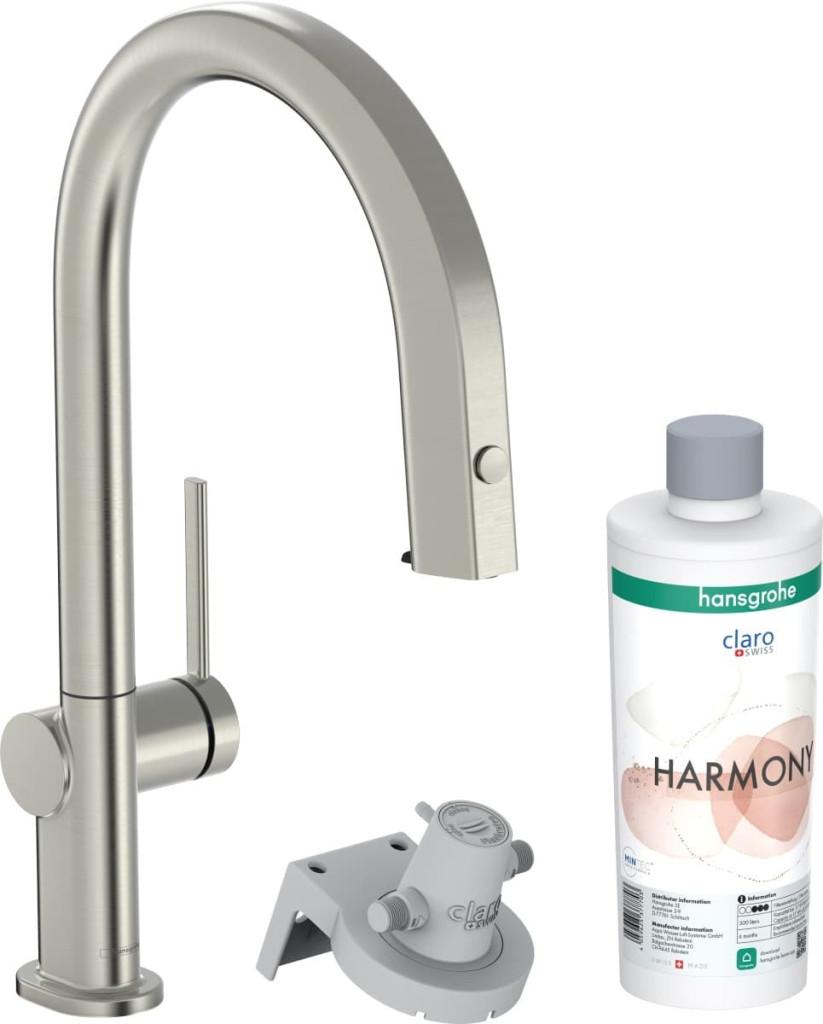 Oddělené vedení pro filtrovanou a nefiltrovanou voduPrůměrné obohacení minerálními látkami (pro více než 300 l podle WQA): 60 mg/l hořčíku, 25 mg/l draslíkuFiltrační kapacita: 300 lGarantovaná dostupnost: Náhradní díly jsou dostupné ještě 15 let po ukončení výroby příslušné řadyFiltrovaná a mineralizovaná voda z kuchyňské baterie: více minerálů, méně znečišťujících látek, lepší chuťOddělené vedení filtrované a nefiltrované vodyVoda vyhovující každé chuti: filtrovaná voda bez bublinek a mineralizovaná pitná voda pouhým stisknutím tlačítka na výtoku.Součásti dodávky: páková kuchyňská baterie, připojovací hadice, upevňovací materiál, montážní návodPrůměrné obohacení minerálními látkami (více než 300 l podle WQA): 60 mg/l hořčíku, 25 mg/l draslíkuFiltrační kapacita: 300 lSoučástí dodávky je box na hadici (sBox): poskytuje prodloužení vytahovacího výtoku až na 76 cm a uklizený prostor ve skříňce pod dřezemVětší volnost pohybu: Otočný výtok nabízí tři varianty rozsahu otočení (60°, 110° nebo 150°).Snadné čištění: Vodní kámen lze odstranit lehkým otřením silikonové vložky na výtoku (QuickClean).Mimořádně dlouhá životnost: Dodává se s kvalitním, snadno použitelným keramickým systémem baterie od hansgrohe.Vzhled nerezové oceli: Díky speciální technologii je vysoce kvalitní povrchová úprava robustní a vysoce odolná proti poškrábání (PVD)Pro vyšší bezpečnost a delší životnost vyrobeno z vysoce kvalitních materiálůhansgrohe je od roku 1901 prémiovou značkou spolehlivých výrobků pro koupelny a kuchyněPětiletá dobrovolná záruka na produkt vyrobený podle nejvyšších standardů kvality* (více na www.hansgrohe.cz/zaruka)Šest možných filtračních vložek: aktivní uhlí, aktivní uhlí + mineralizace („Harmony“, „Life“, „Sport“), aktivní uhlí + změkčovač vody (dvě velikosti kapacity filtru)PARAMETRY: