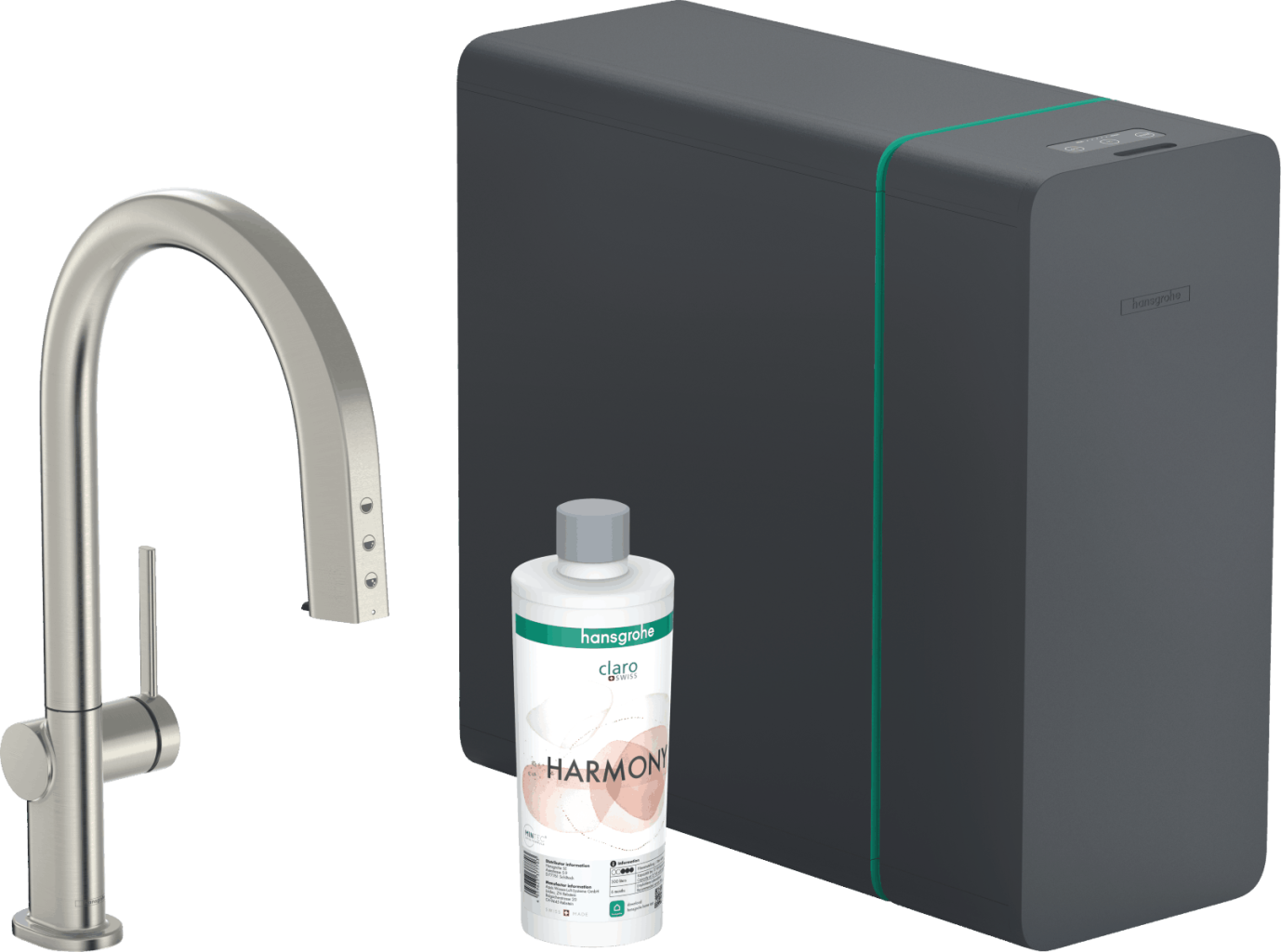 - obsahuje: páková kuchyňská baterie, box na hadici, hlavice filtru, mineralizační kartuše Harmony s filtrem, SodaBase