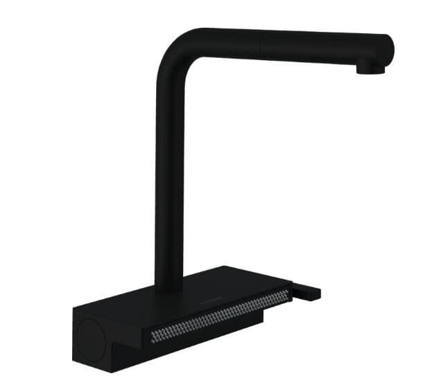 Potřebný standardní otvor pro baterii (35 mm) ve středové poloze vůči dřezu; vzdálenost od stěn dřezu max. 45 mmDoporučuje se jednodřez. Po ověření možný i dvojdřezFlexibilní hadice (G ⅜, DN15) s certifikací pro rozvod pitné vody k jednoduchému připojení ke standardním rohovým ventilůmExkluzivní design: Revoluce v kuchyni díky inovativním funkcím a novému tvaru.SatinFlow: hansgrohe přináší do kuchyně úsporný plochý vodní proud, který nabízí úplně nové možnosti.Výrazný kontrast: Trendová matná černá barva podtrhuje úzký základní tvar a zvýrazňuje exkluzivní design.Optimální tok vody: Pro efektivní práci a zábavnější vaření.Voda na přání: 2 typy proudu se přepínají stisknutím tlačítka. SatinFlow je extra označený pro bezpečnější ovládání.Větší volnost pohybu: Vzdálenost výtoku baterie od dřezu činí 250 mm, otočný vývod lze také nastavovat ve 3 stupních (o 60°, 110°, nebo 150°).S vytahovacím výtokem: Voda tam, kde je potřeba – výtok lze vytáhnout až o 50 cm.Magnetické uchycení: Vytahovací sprška drží bezpečně uprostřed vývodu baterie (hansgrohe MagFit).Krystalicky čistý plný proud s průtokem až 7 l/min. umožňuje rychlé napouštění hrnců. Typ proudu SatinFlow slouží k úspornému mytí choulostivých potravin při průtoku max. 4 l/min.Snadná instalace: Připojení baterie k přívodu vody zajišťují flexibilní hadice (G ⅜). Otvor na kohoutek musí mít průměr 35 mm; vzdálenost od stěny dřezu max. 45 mm.Včetně multifunkčního sítka: V kombinaci s typem proudu SatinFlow slouží k šetrnému mytí s následným odkapáním.Snadné čištění: Vodní kámen lze snadno odstranit otřením silikonových trysek na výtoku (QuickClean).Součásti dodávky: páková kuchyňská baterie, přívodní hadice, upevnění dříku, upevňovací materiál, montážní návodVšechny součásti jsou vyrobeny z vysoce kvalitních materiálů – pro větší bezpečnost a dlouhodobé užívání v domácnosti.Historie hansgrohe od roku 1901 – prémiová značka výrobků pro koupelnu a kuchyňProdloužená pětiletá záruka* (viz. www.hansgrohe.cz/zaruka) na produkt, vyrobený podle nejvyšších kvalitativních standardůPARAMETRY: